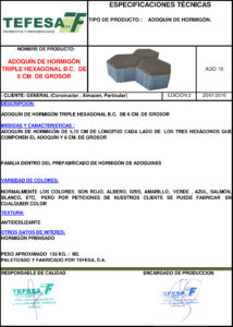 InicioObra civilAdoquines bicapaADOQUÍN DE HORMIGÓN TRIPLE HEXAGONAL DE 6 CM. ADOQUÍN DE HORMIGÓN TRIPLE HEXAGONAL DE 6 CM.€0.00 DECLARACIÓN DE PRESTACIONES Ado triple hexagonal 6 Color Elige una opciónGrisMarrónRojoVerdeLimpiar ADOQUÍN DE HORMIGÓN TRIPLE HEXAGONAL DE 6 CM. cantidad Buy now Add to Wishlist Add to Wishlist Add to Wishlist Add to Wishlist SKU: N/D Categoría: Adoquines bicapa Product ID: 2438 Descripción Información adicional Descripción ADOQUÍN DE HORMIGÓN TRIPLE HEXAGONAL DE 6 CM. Información adicional Color Gris, Marrón, Rojo, Verde Productos relacionados Add to Wishlist Add to Wishlist ADOQUÍN HORMIGÓN 10X10X6 €0.00 Add to Wishlist Add to Wishlist Add to Wishlist Add to Wishlist ADOQUÍN HORMIGÓN 20X20X8 €0.00 Add to Wishlist Add to Wishlist Add to Wishlist Add to Wishlist ADOQUÍN HORMIGÓN 10X10X8 €0.00 Add to Wishlist Add to Wishlist