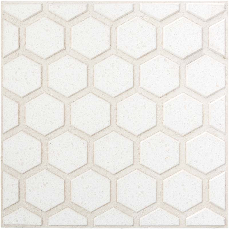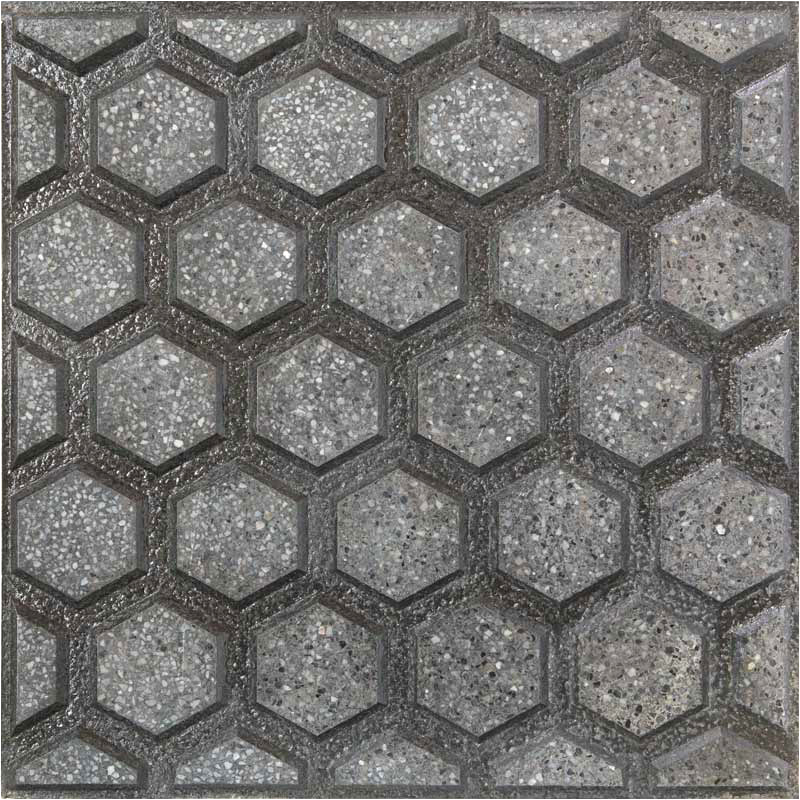 Terrazo de 40 x 40 en color gris con diseño en forma de colmena.